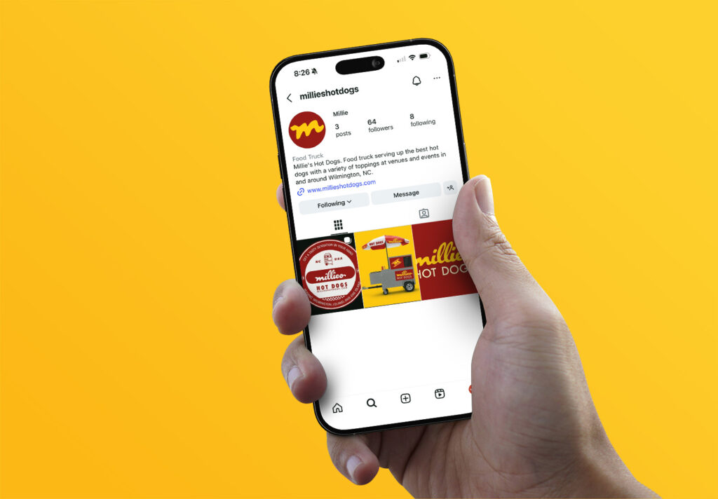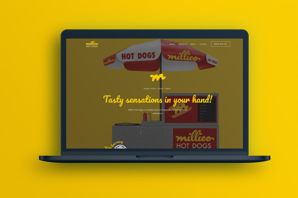 Branding for a mobile food service business. Brand identity, logo development, messaging, brand guide, website, social media, and merchandise.